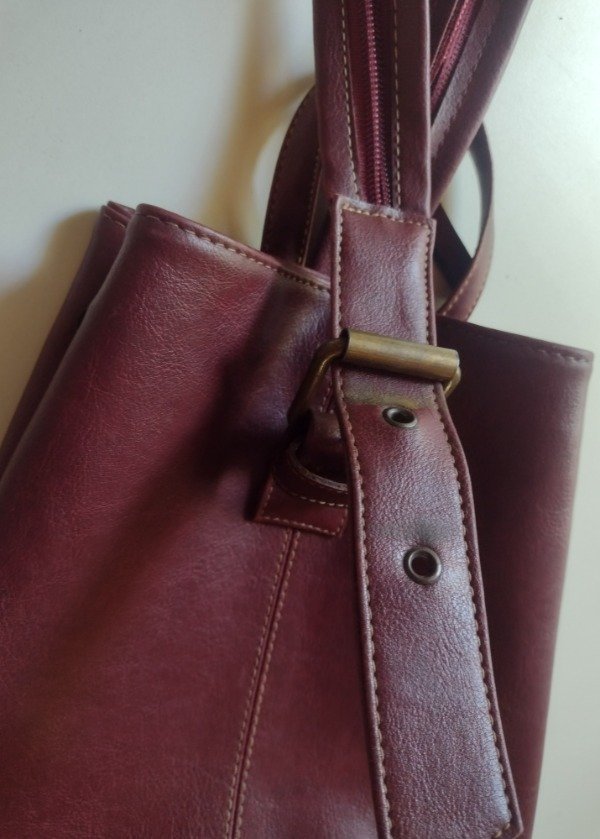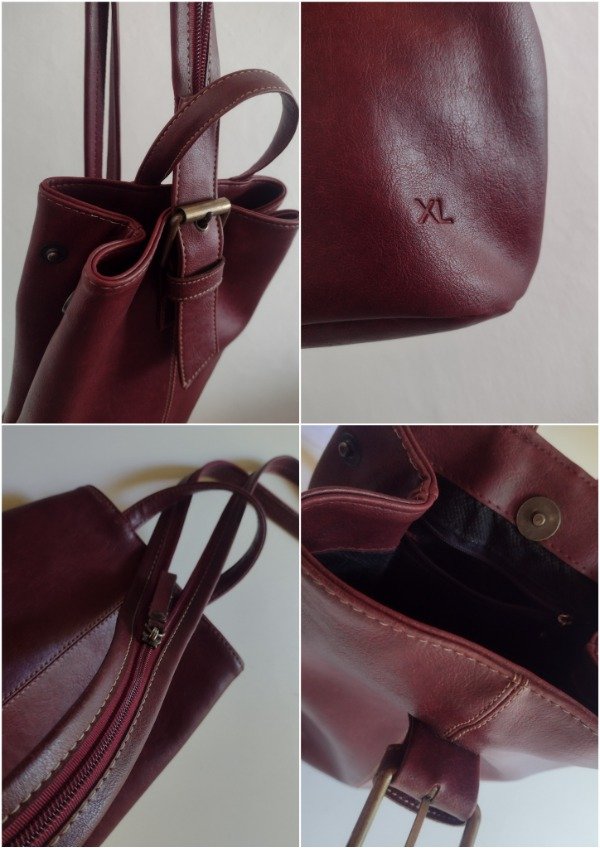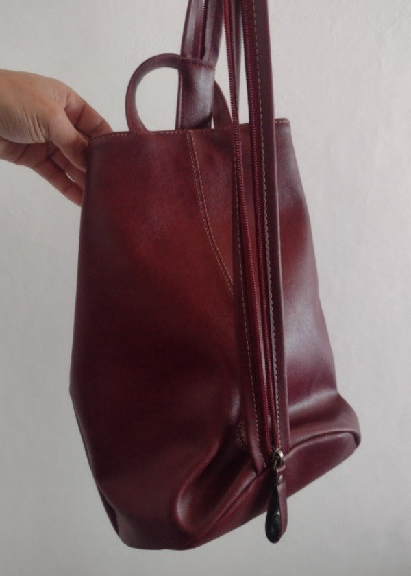 La correa cuenta con cierre central para poder usarla como mochila o como cartera.
