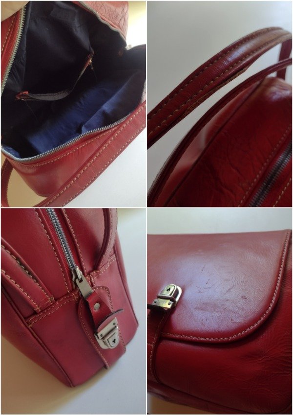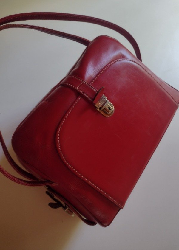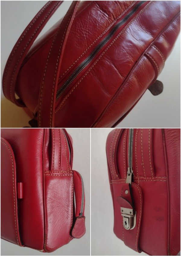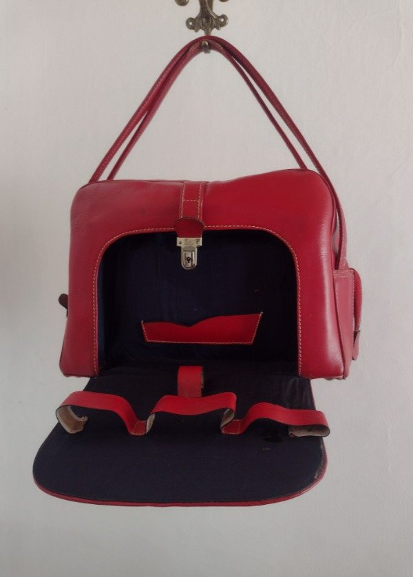 Valija vintage de cuero, color rojo. Tamaño mediano.