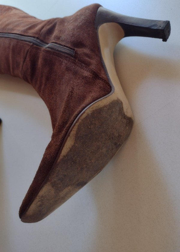 Estado: 9/10: Muy buen estado general de la gamuza. Detalles de desgaste típicos del uso en la suela y le falta la corredera a uno de los cierres. (Ver última imágen)