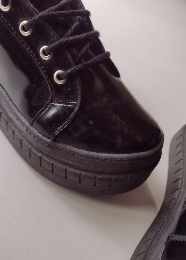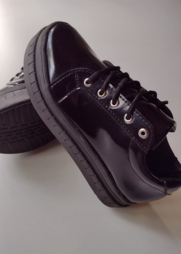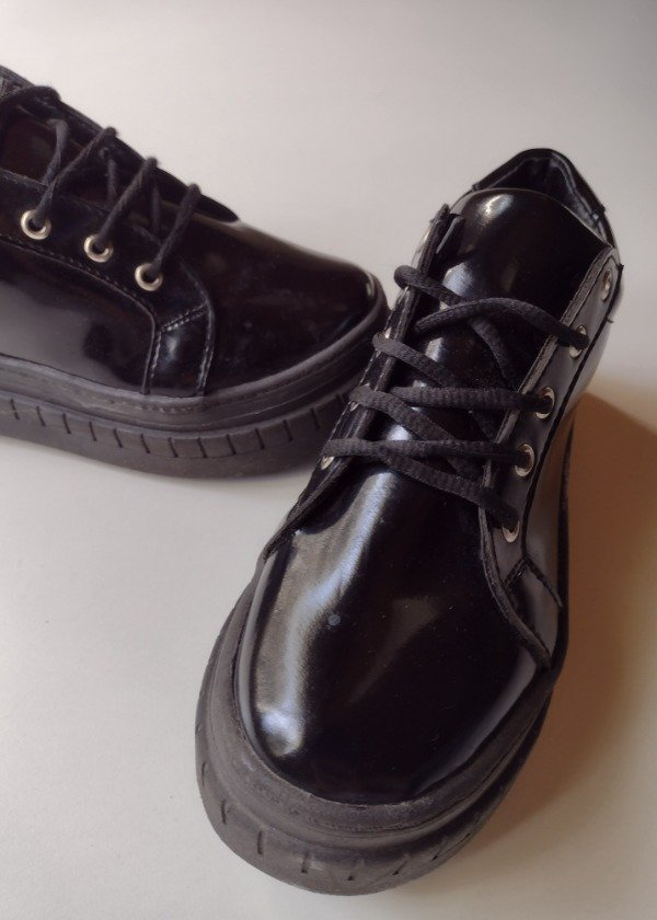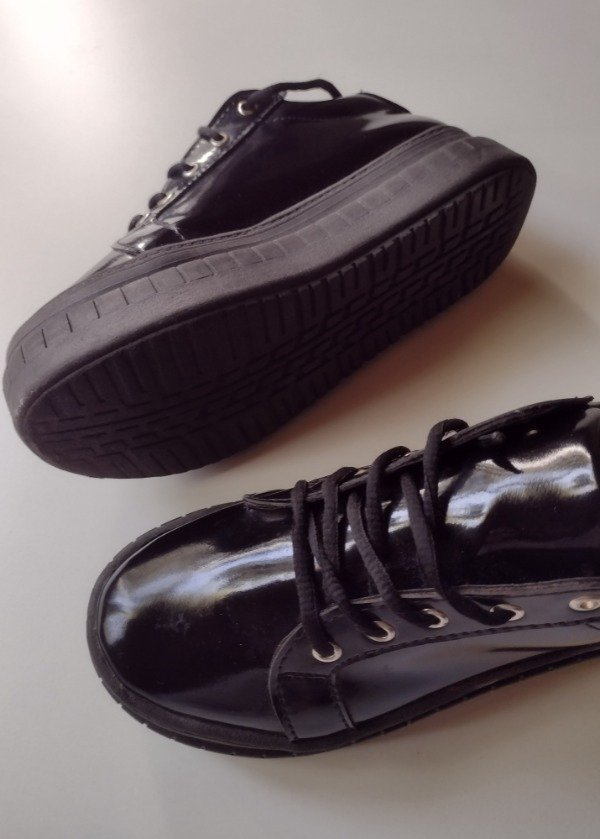 Zapatillas segunda mano, simil cuero acharolado, color negro.