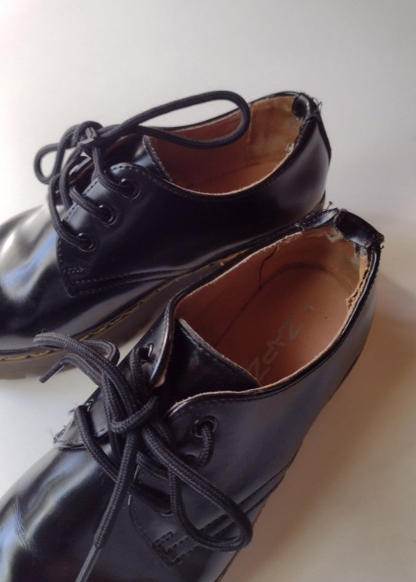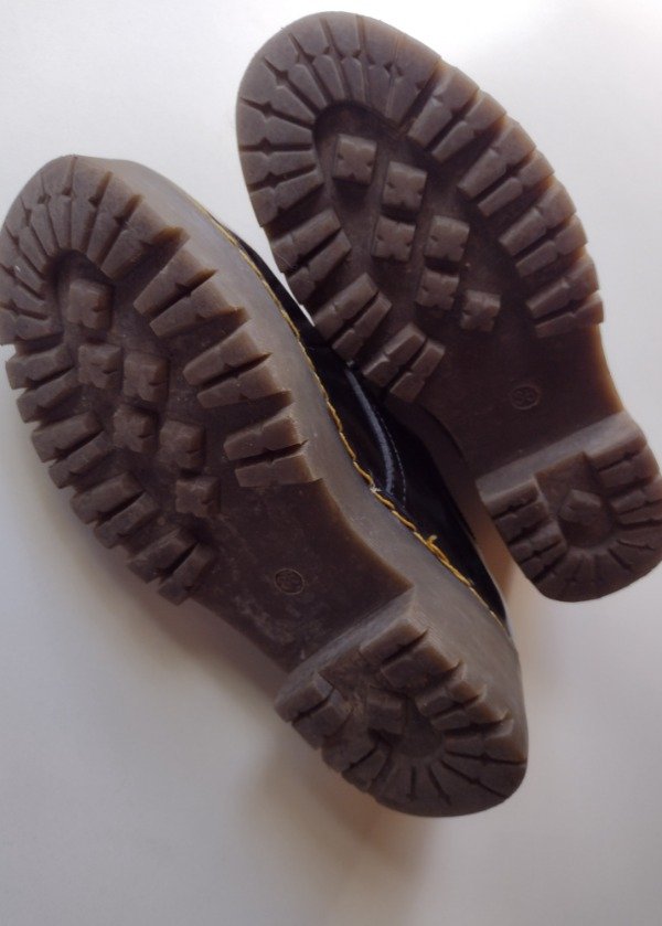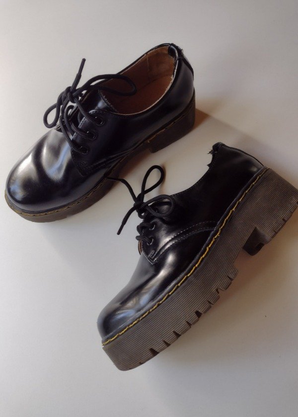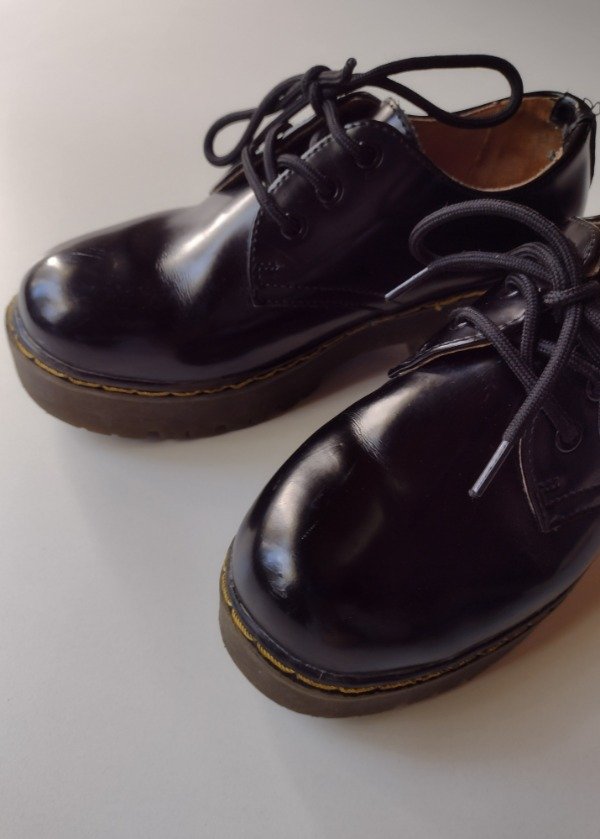 Zapatos segunda mano, simil cuero acharolado, color negro.