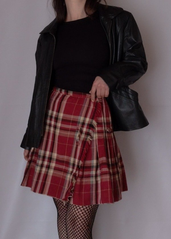 Semi corta, combinada en tonos rojizos, blanco y negro principalmente.
