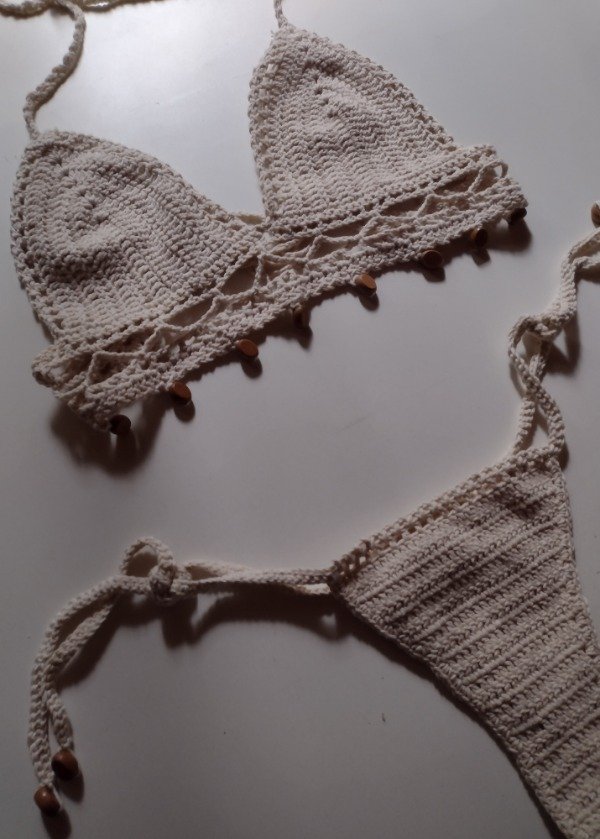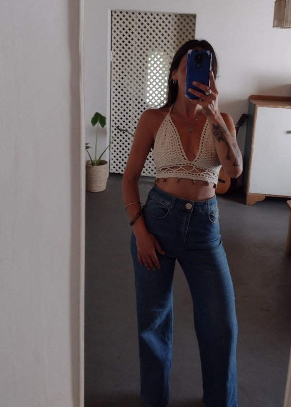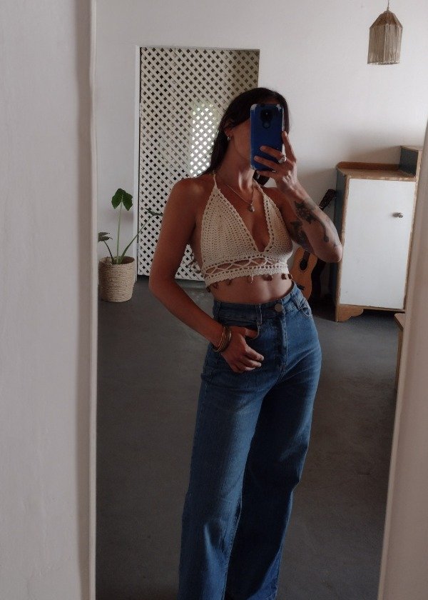Conjunto de top y colaless tejido a crochet artesanalmente.