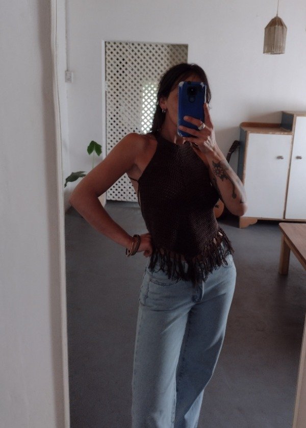 Tiras para ajustar que parten desde el cuello y cruzan en la espalda.