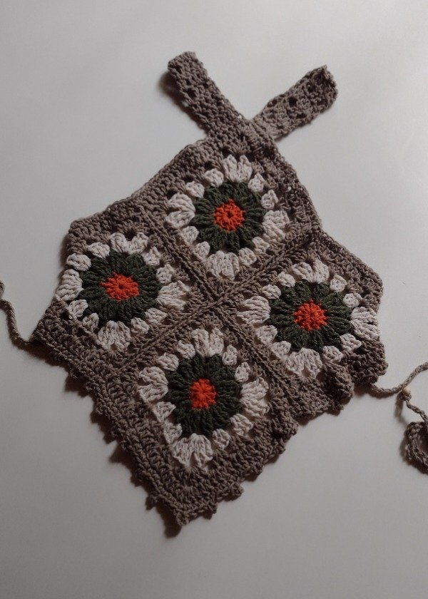 Top tejido a crochet artesanalmente, con diseño de flores.
