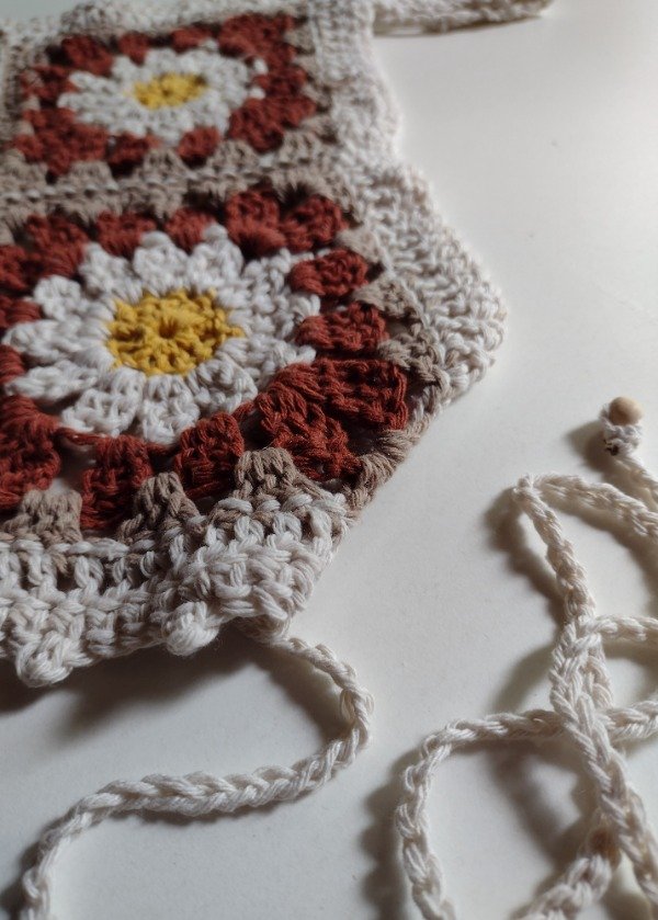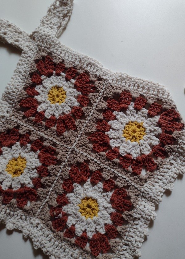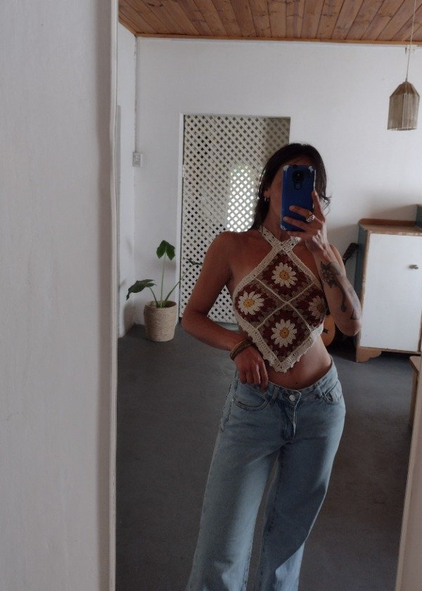 Top tejido a crochet artesanalmente, con diseño de flores.